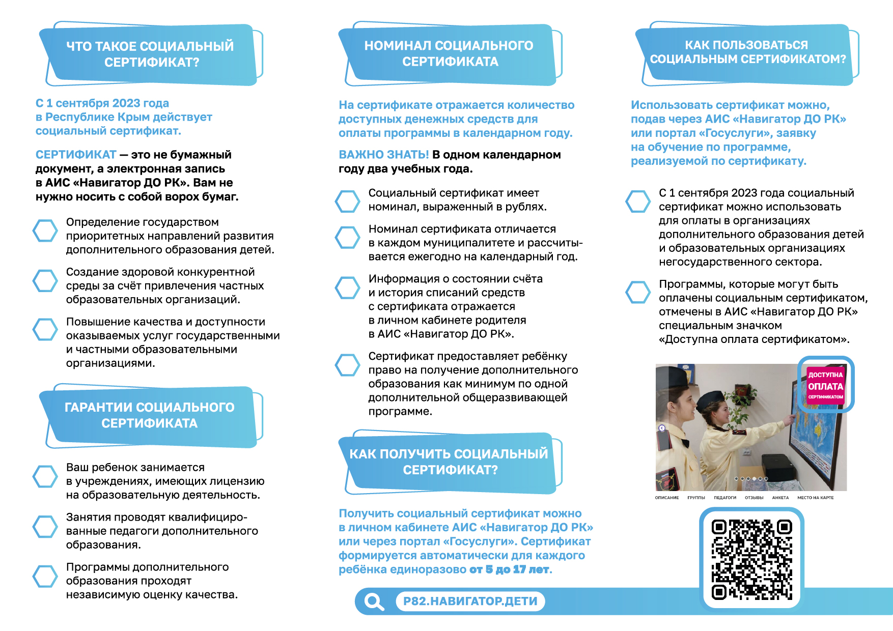 Автоматизированная информационная система "Навигатор дополнительного образования Республики Крым" (далее – Навигатор) – это информационный ресурс, на котором размещена информация о программах дополнительного образования и реализующих их организациях.